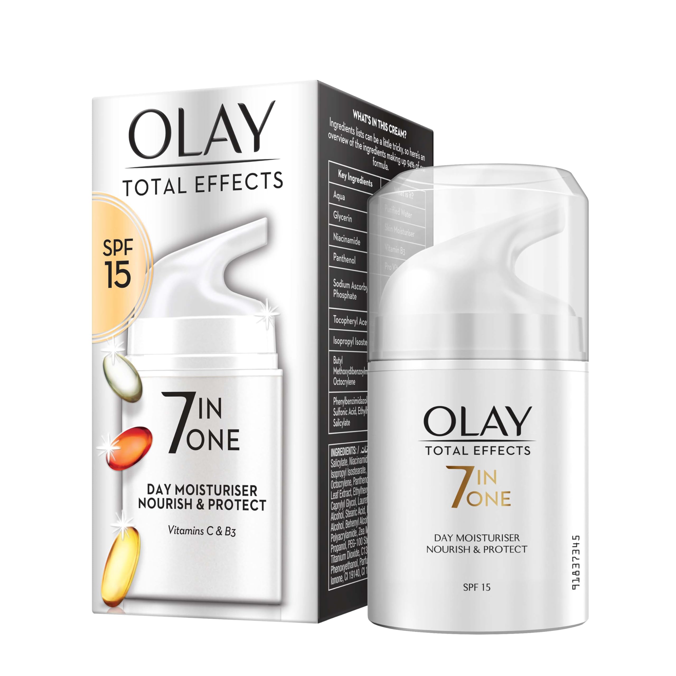 تم تطوير تركيبته لتكون أكثر ثراءً بالفيتامينات بنسبة 40% مقارنة بالتركيبات السابقة، مما يعكس الأسلوب الذي تتبعه Olay لضمان بشرة أصغر سنًا بطريقة سهلة وأنيقة. كما يحتوي كريم Total Effects على مجمع VitaNiacin، الغني بفيتامين E و B5 و B3 المعروف أيضًا باسم Niacinamide، الذي يساهم في تعزيز الحيوية والصحة العامة للبشرة.